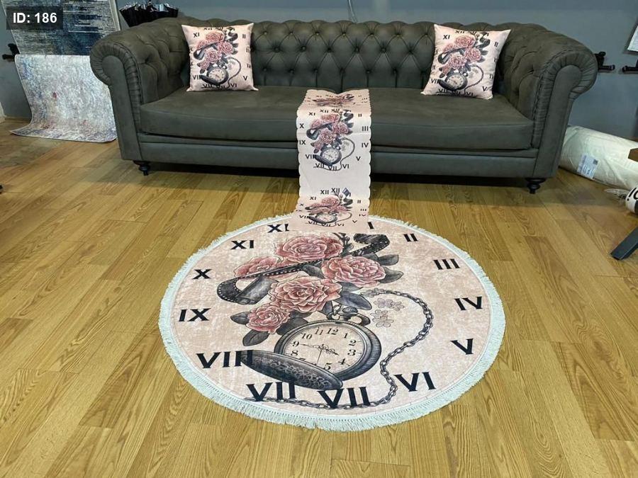 بتتكون من: * سجادة قطرها 90 سم * رنر 140*40 * وجه قرنية عدد 2