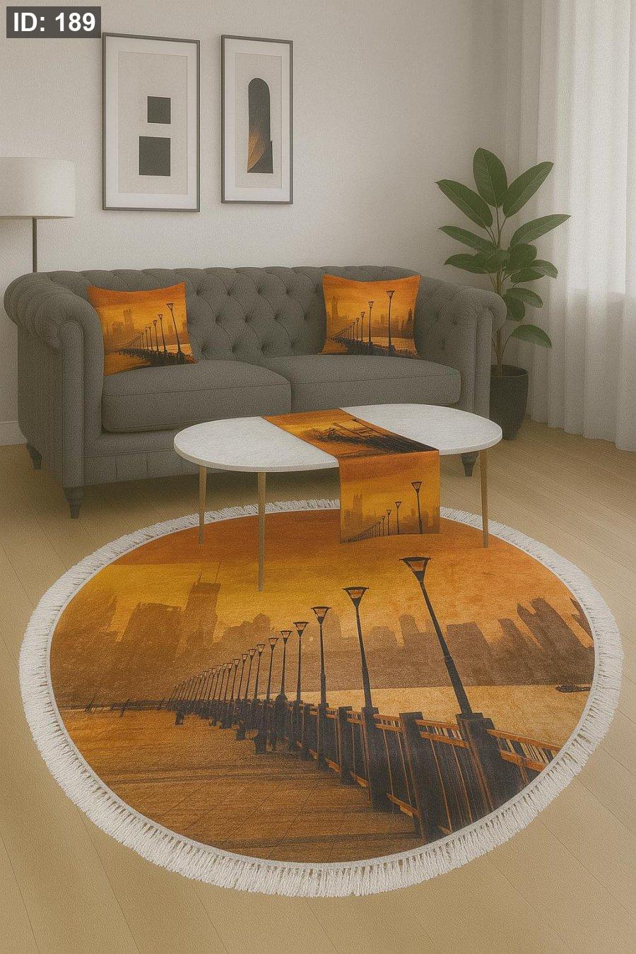 بتتكون من: * سجادة قطرها 90 سم * رنر 140*40 * وجه قرنية عدد 2