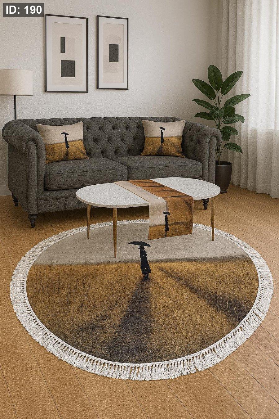 بتتكون من: * سجادة قطرها 90 سم * رنر 140*40 * وجه قرنية عدد 2