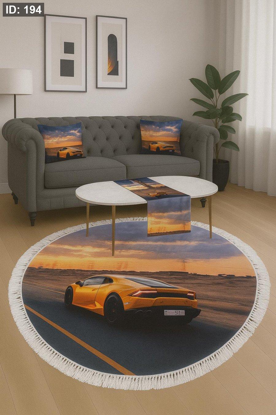 بتتكون من: * سجادة قطرها 90 سم * رنر 140*40 * وجه قرنية عدد 2