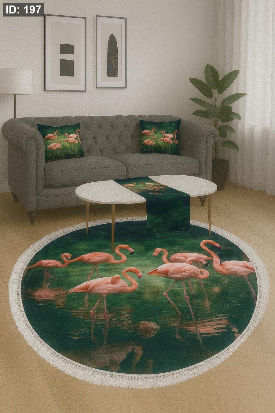بتتكون من: * سجادة قطرها 90 سم * رنر 140*40 * وجه قرنية عدد 2