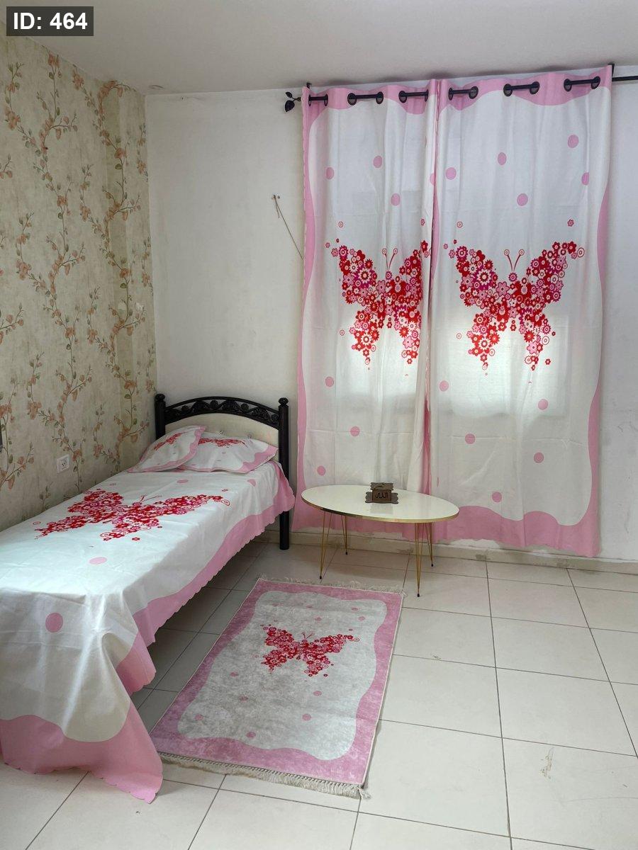 ستارة قطعتين حلقات حديد (ارتفاع 2.6متر *عرض3متر ) سجادة 90*150 شرشف مفرد ونص مخدة قرنة