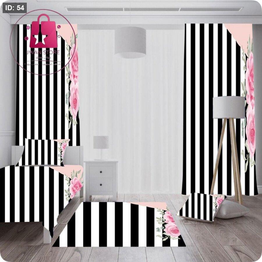 بتكون من : ستارة قطعتين حلقات حديد (ارتفاع 2.6متر *عرض3متر ) * سجادة 90*150 * شرشف مفرد ونص * مخدة* قرنة *