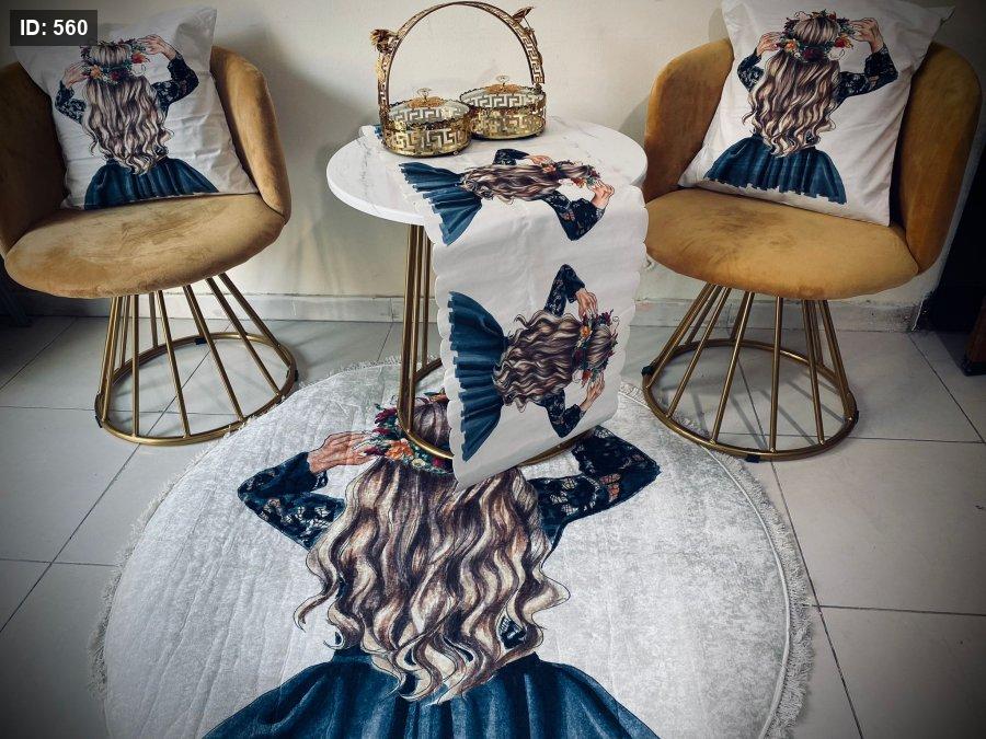 بتتكون من: * سجادة قطرها 90 سم * رنر 140*40 * وجه قرنية عدد 2